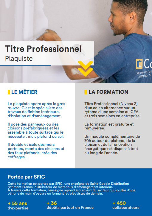 Une certification reconnue au niveau national sur le métier de plaquiste/plafiste